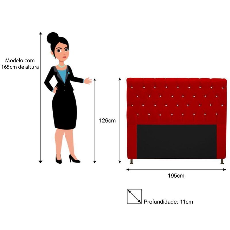 Cabeceira Estofada Cristal 195 Cm King Size Com Strass Suede Vermelho- Adj Decor