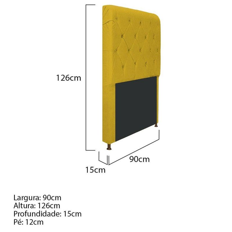 Cabeceira Estofada Cristal 90 Cm Solteiro Com Capitonê Suede Amarelo - Adj Decor
