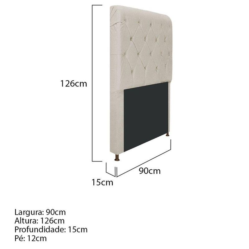 Cabeceira Estofada Cristal 90 Cm Solteiro Com Capitonê Suede Bege - Adj Decor