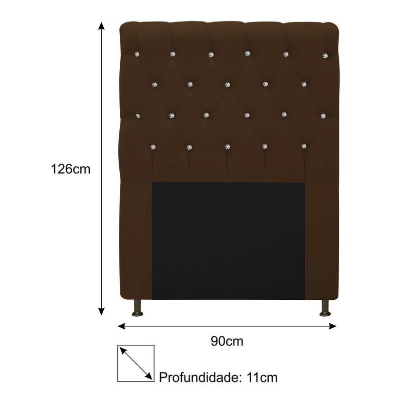 Cabeceira Estofada Cristal 90 Cm Solteiro Com Strass Suede Marrom - Adj Decor