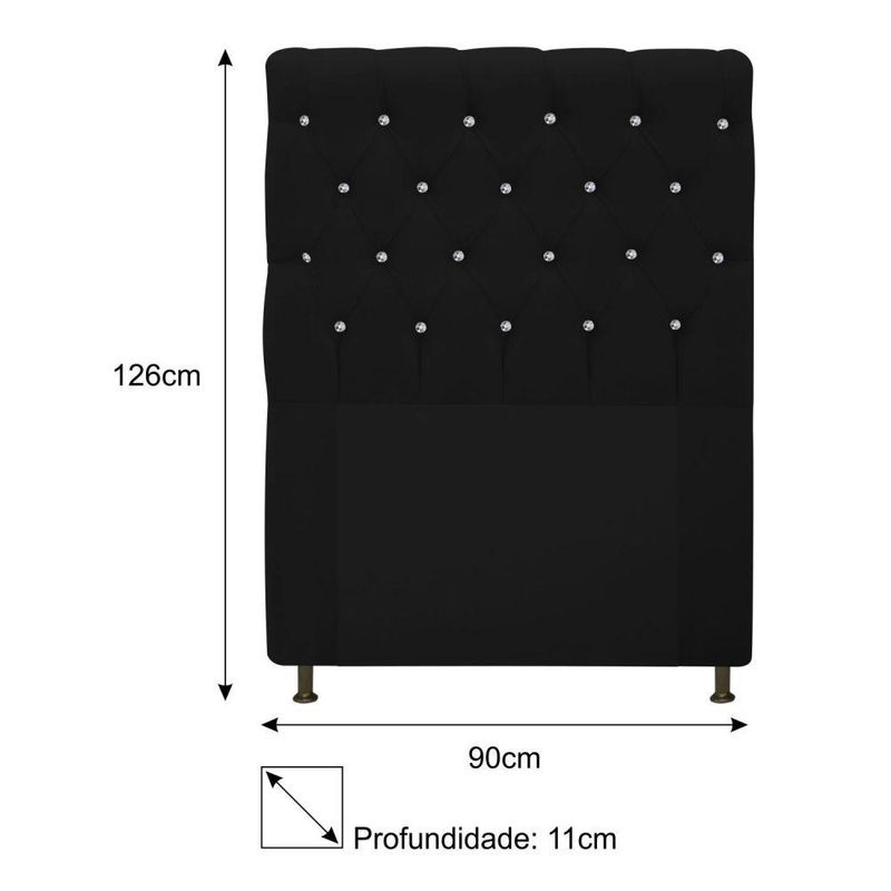 Cabeceira Estofada Cristal 90 Cm Solteiro Com Strass Suede Preto - Adj Decor