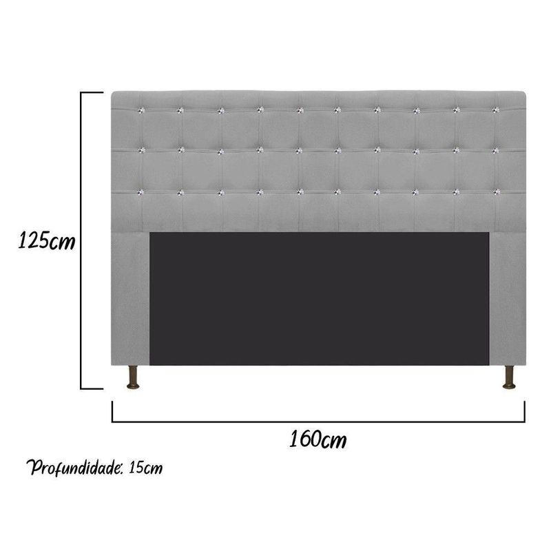 Cabeceira Estofada Dama 160cm Queen Size Cinza