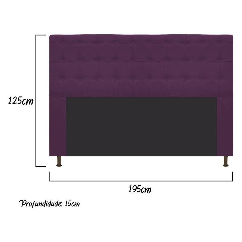 Cabeceira Estofada Dama 195 Cm King Size Com Botonê Suede Roxo - Adj Decor