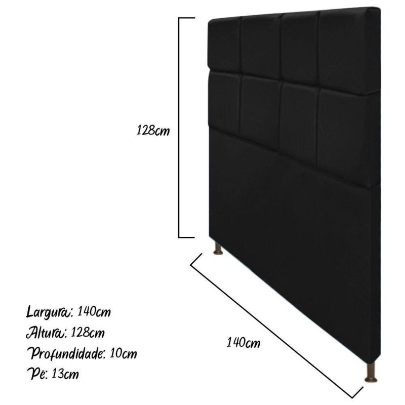 Cabeceira Estofada Damares 140cm Casal com Botonê Preto