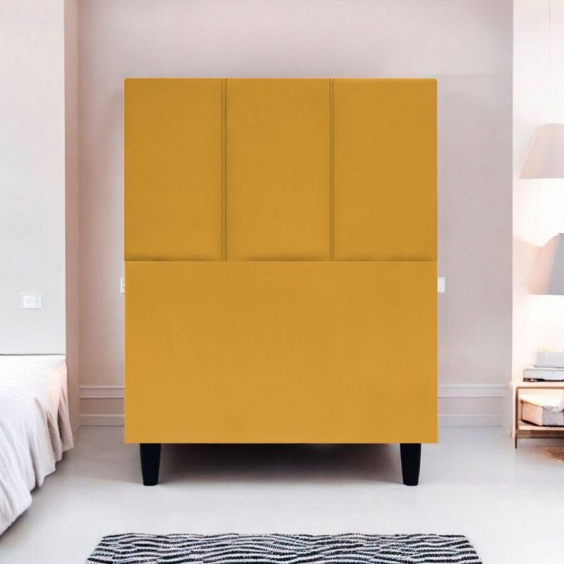 Cabeceira Estofada Para Cama Box Solteiro 90 Cm Classic Suede - Mostarda, Suede