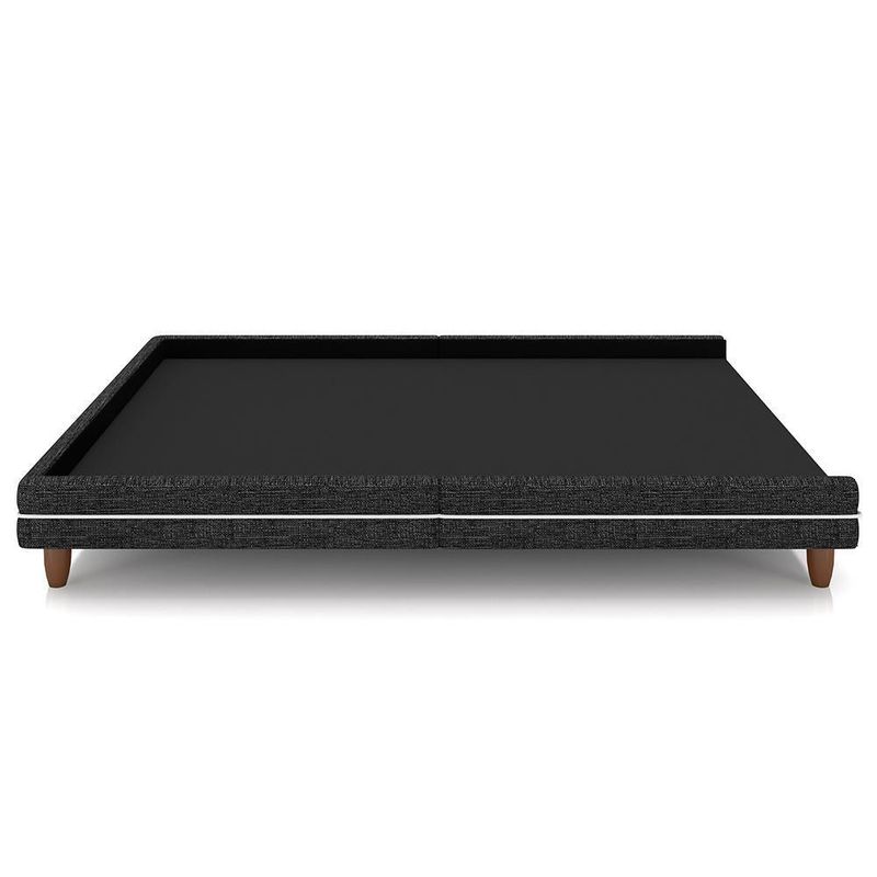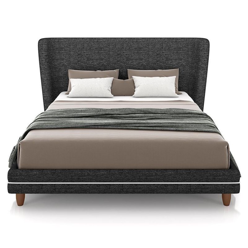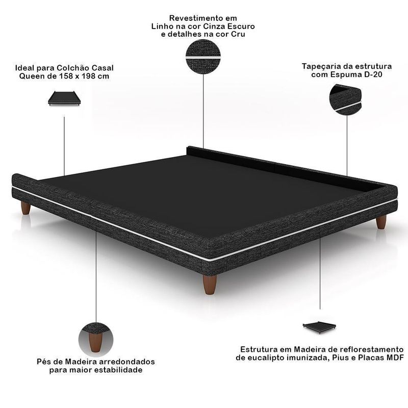 Cabeceira Queen Nilo 160cm Com Cama Pés Madeira Suném P05 Linho Cinza Escuro - Lyam Decor