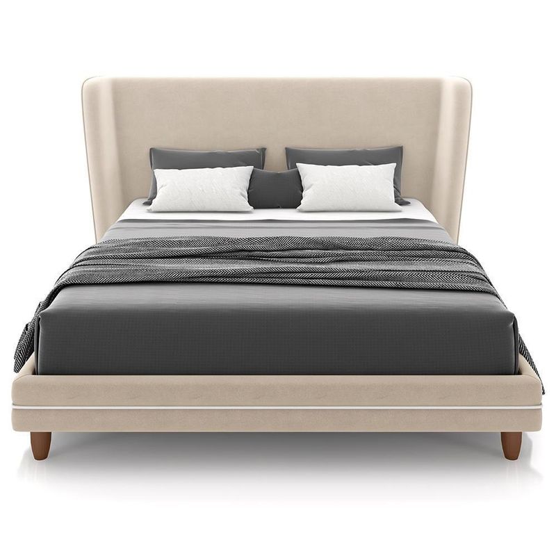 Cabeceira Queen Nilo 160cm Com Cama Pés Madeira Suném P05 Veludo Bege - Lyam Decor