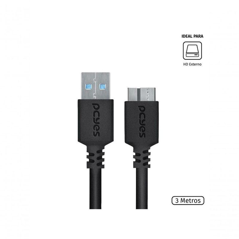Cabo Para Hd Externo Usb A 3.0 Macho Para Micro Usb B 3.0 (10 Pinos) Macho 28awg Puro Cobre 3 Metros - Puamcm3-3