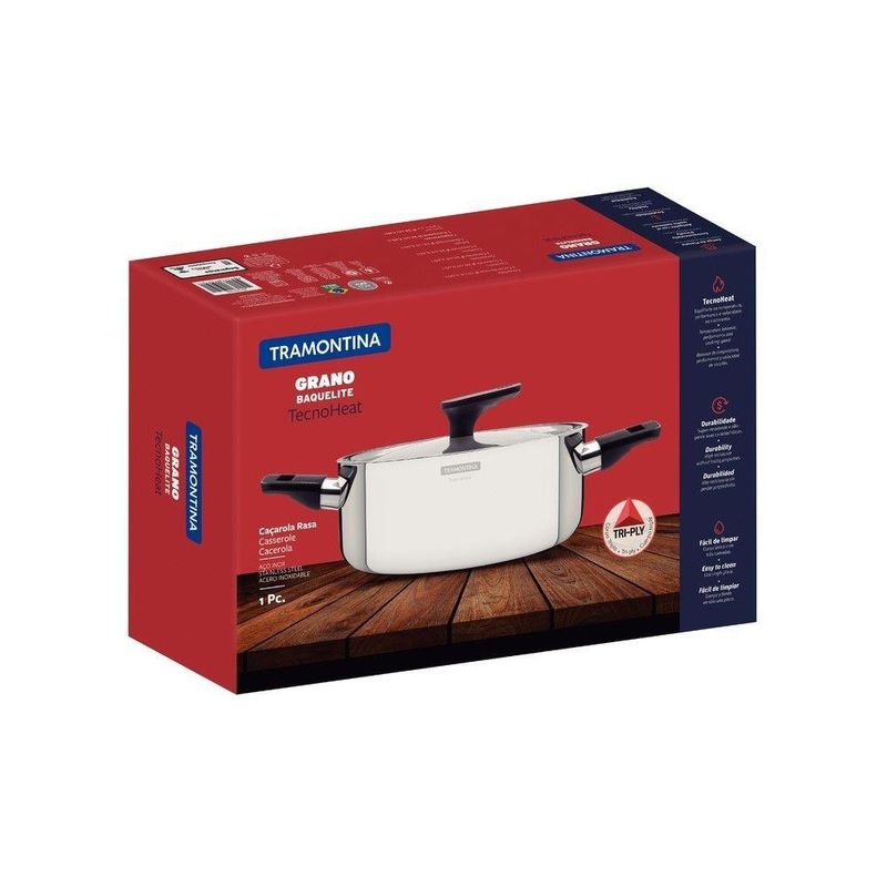 Caçarola Grano Baquelite 20 cm 3,8 L em Aço Inox Corpo Triplo com Cabo de Baquelite Tramontina - Especificações Técnicas