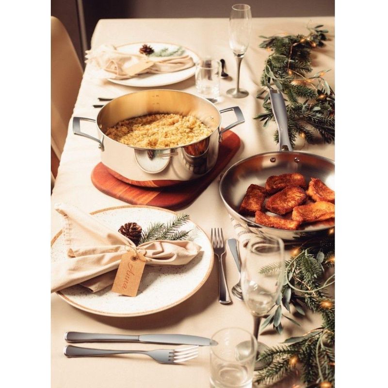 Caçarola Rasa Grano 24 Cm 4,7 L Em Aço Inox Com Corpo Triplo Tramontina 62143/240 Caçarola Rasa Grano 24 cm 4,7 L em Aço Inox com Corpo Triplo Tramontina O preparo dos alimentos vai ganhar um valor diferenciado com a Caçarola Tramontina Rasa em Aço Inox Corpo Triplo com Tampa e Alças 4,7 L da Linha Grano. Pensada em aliar tecnologia de ponta com design sofisticado, ela é a escolha perfeita para preparar seus pratos. Totalmente produzida em aço inox, não solta resíduos e possui acabamento em alto brilho, sendo ideal para ser levada à mesa. Com o corpo triplo (aço inox + alumínio + aço inox) distribui o calor uniformemente, proporcionando um cozimento mais rápido e uniforme, deixando os alimentos aquecidos por mais tempo e economizando energia. É muito prática também na hora da limpeza, por seu desenho limpo e sem cantos facilita a higienização do produto e pode ser lavada diariamente na máquina de lavar louças. O design moderno é visto na tampa com encaixe perfeito. Caçarola rasa, possui 24 cm de diâmetro. É versátil, podendo ser utilizada em fogões à gás, elétricos, vitrocerâmicos e por indução. Caçarola Rasa Grano 24 cm 4,7 L em Aço Inox com Corpo Triplo Tramontina - Especificações TécnicasDimensões Produto (Compr. X Larg. X Alt.): 33,7 x 25 x 14,5 cm.Diâmetro: 24,0 cm.Capacidade: 4,7 l.Espessura: 2,6 mm.Material: Aço Inox.Corpo e Fundo Triplo: Sim.Revestimento: Sem antiaderência.Cabo: Aço Inox.Tampa: Aço Inox.Pode ser utilizada nos fogões: elétrico, gás, indução e vitrocerâmico. Caçarola Rasa Grano 24 cm 4,7 L em Aço Inox com Corpo Triplo Tramontina - Na sua casa!