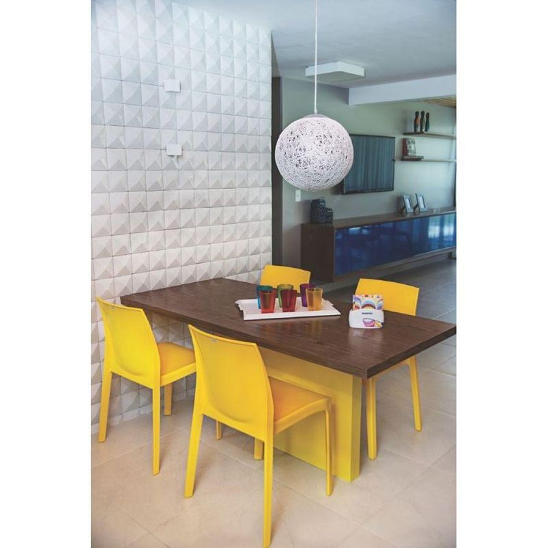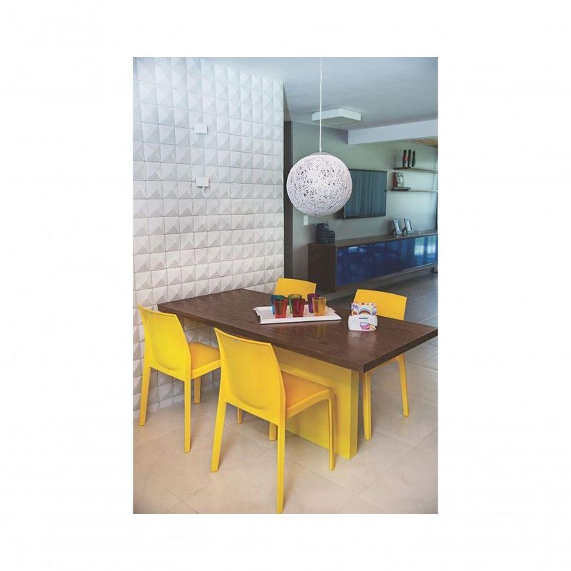 - Material: A Cadeira Alice Amarela Tramontina é fabricada em polipropileno e fibra de vidro.