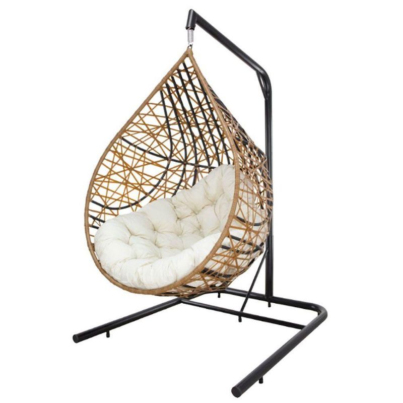 Cadeira Balanço Ninho Suspenso Gota Tramado Com Suporte E Almofada Impermeável Acesse Móveis Caramelo/branco Gelo
