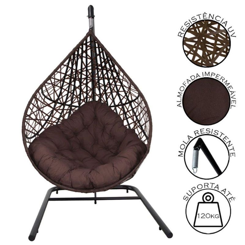 Cadeira Balanço Ninho Suspenso Gota Tramado Com Suporte E Almofada Impermeável Acesse Móveis Tabaco Com Marrom