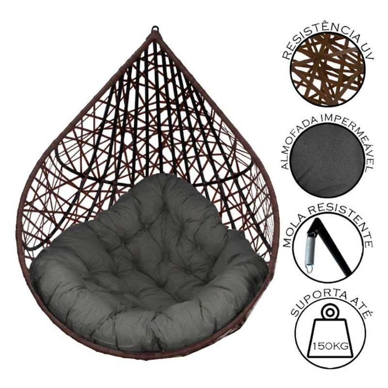 Cadeira Balanço Ninho Suspenso Gota Tramado Com Almofada Impermeável Acesse Móveis Tabaco/cinza