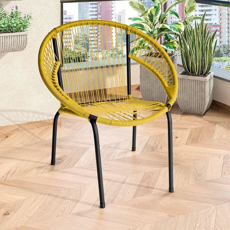 Cadeira De área Eclipse Tramado Em Fibra Sintética E Aço Amarelo