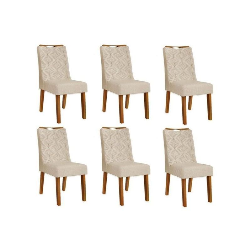 Cadeira De Cozinha Stela Kit 6 Un Ipe/linho Neve - Dj Móveis
