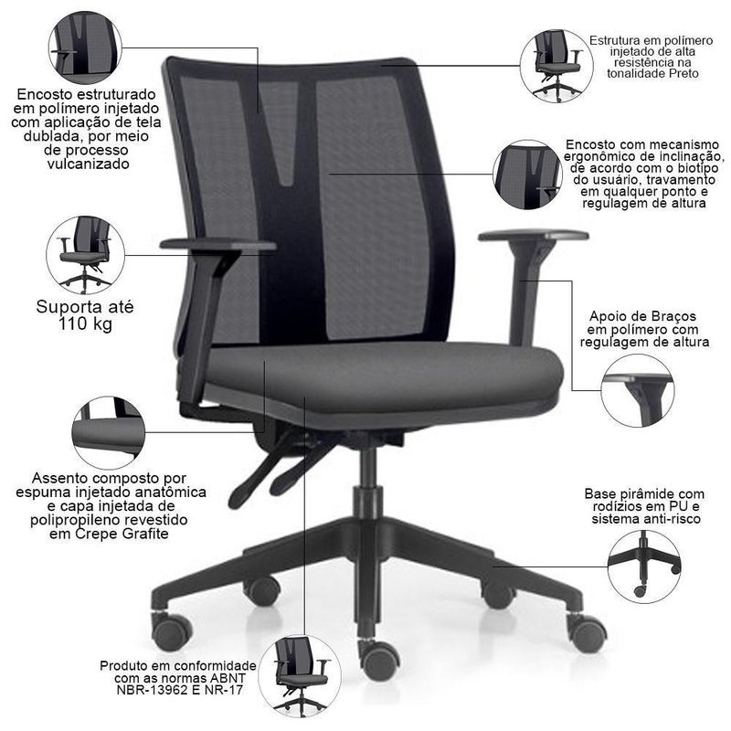 Cadeira De Escritório Giratória Diretor Flow F02 Base Preta Crepe Grafite - Lyam Decor