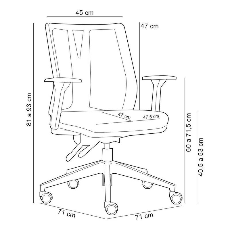 Altura regulável do chão ao assento: 40,5 a 53 cm