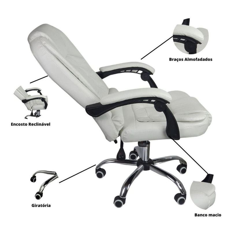 Cadeira De Escritório Presidente Reclinável Ergonômica Branco