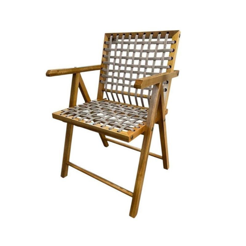 - 1 Cadeira em Madeira com Corda Náutica e Apoio de Braços