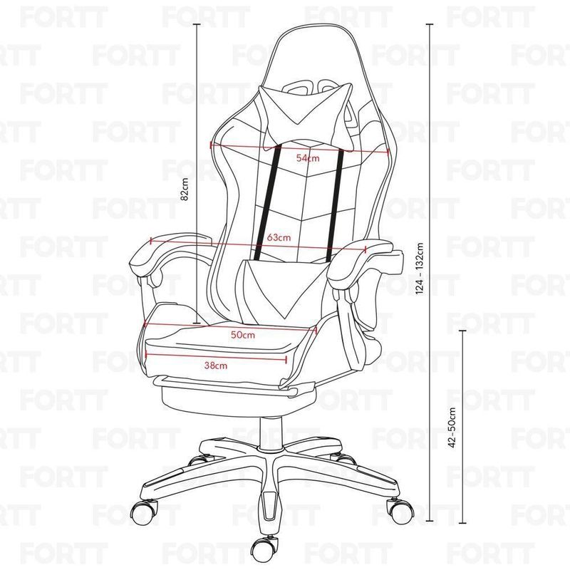 - Fotos Meramente ilustrativas. Linha: Trieste | Modelo: CGF002-B | Base: Plástico | Marca: Fortt | Categoria: Gamer | Encosto reclinável: Sim | Graus de inclinação: 135 graus | Ajuste de altura: Sim | Densidade da espuma: 60kgs/m3 | Revestimento: Couro PU | Estrutura: Aço com madeira | Peso suportado: 120kg | Travesseiro para lombar e cabeça: Sim | Com apoio para os pés: Sim