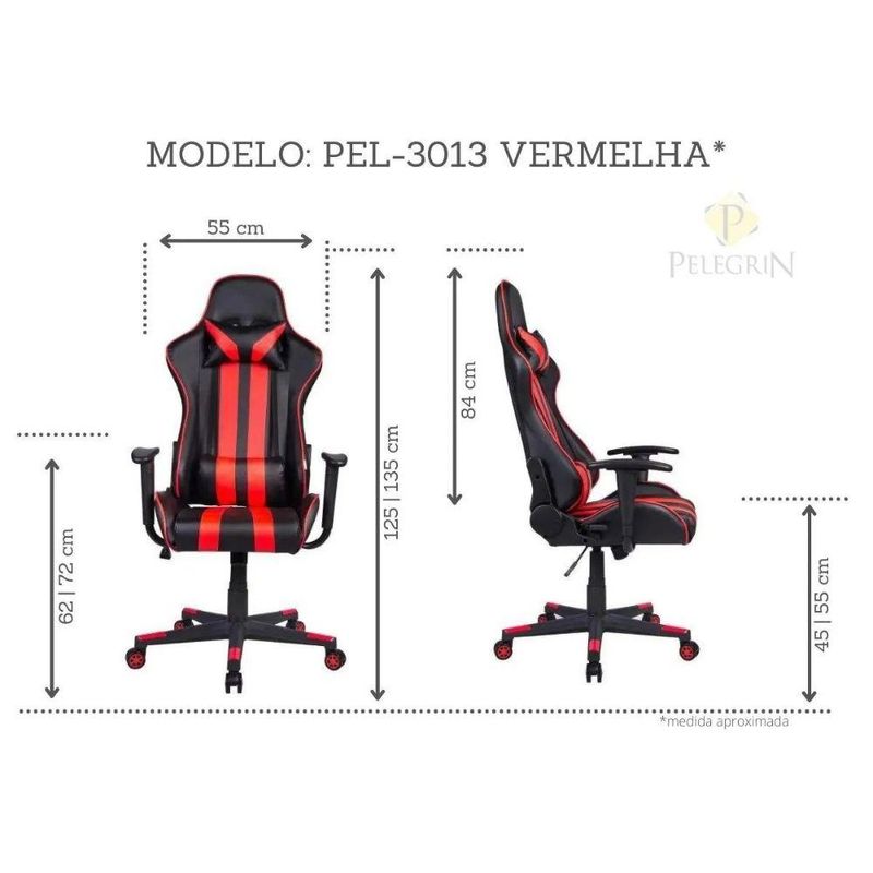 A "Cadeira Gamer Pelegrin em Couro PU Reclinável PEL-3013 Preta e Vermelha" com o design inspirado em carros esportivos, foi desenvolvida especialmente para os apaixonados em jogos que não abrem mão do conforto e ergonomia durante longas horas de uso. A cadeira possui encosto com sistema reclinável que vai até 180º, acompanha almofada de apoio para pescoço e lombar que garantem ainda mais conforto. Além da sua inclinação, a cadeira possui sistema relax que permite que a cadeira acompanhe o movimento do seu corpo.