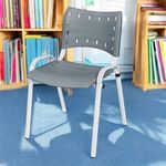 Cadeira Iso Base Branco Igreja, Escola, Escritório - Cinza Kit 7 Peças