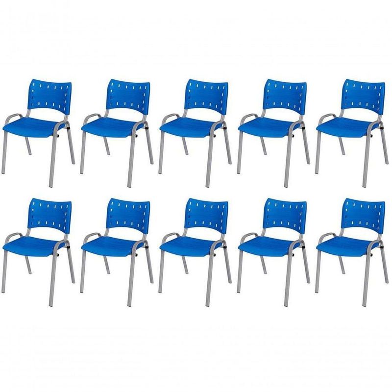 Cadeira Iso Base Cinza, Igreja, Escola, Escritório - Azul Kit 10 Peças