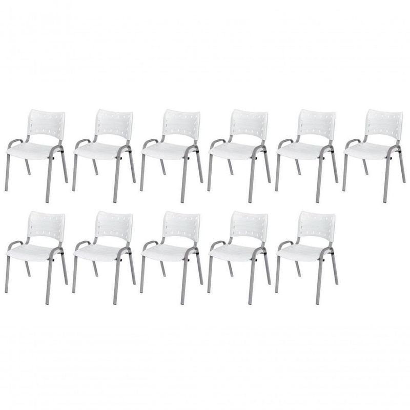 Cadeira Iso Base Cinza, Igreja, Escola, Escritório - Branco Kit 11 Peças