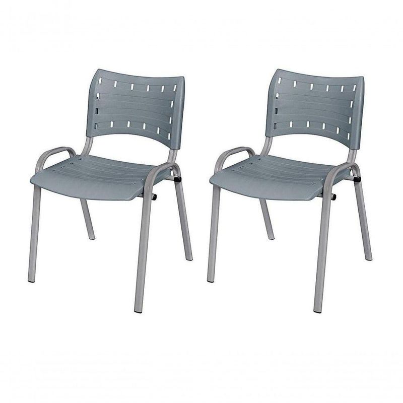 Cadeira Iso Base Cinza Igreja, Escola, Escritório - Cinza - Kit 2 Peças