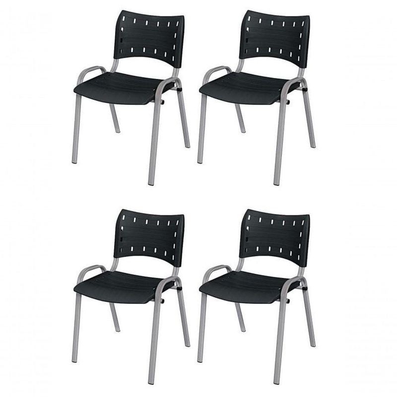 Cadeira Iso Base Cinza, Igreja, Escola, Escritório - Preto Kit 4 Peças