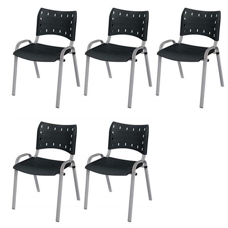 Cadeira Iso Base Cinza, Igreja, Escola, Escritório - Preto Kit 5 Peças