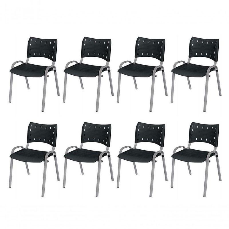 Cadeira Iso Base Cinza, Igreja, Escola, Escritório - Preto Kit 8 Peças