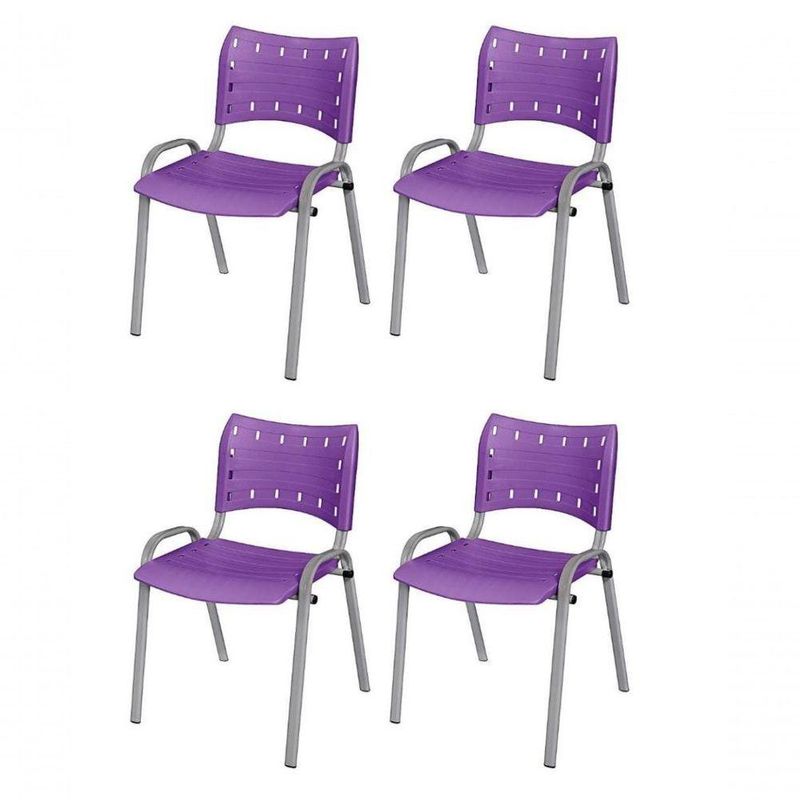 Cadeira Iso Base Cinza, Igreja, Escola, Escritório -violeta Kit 4 Peças
