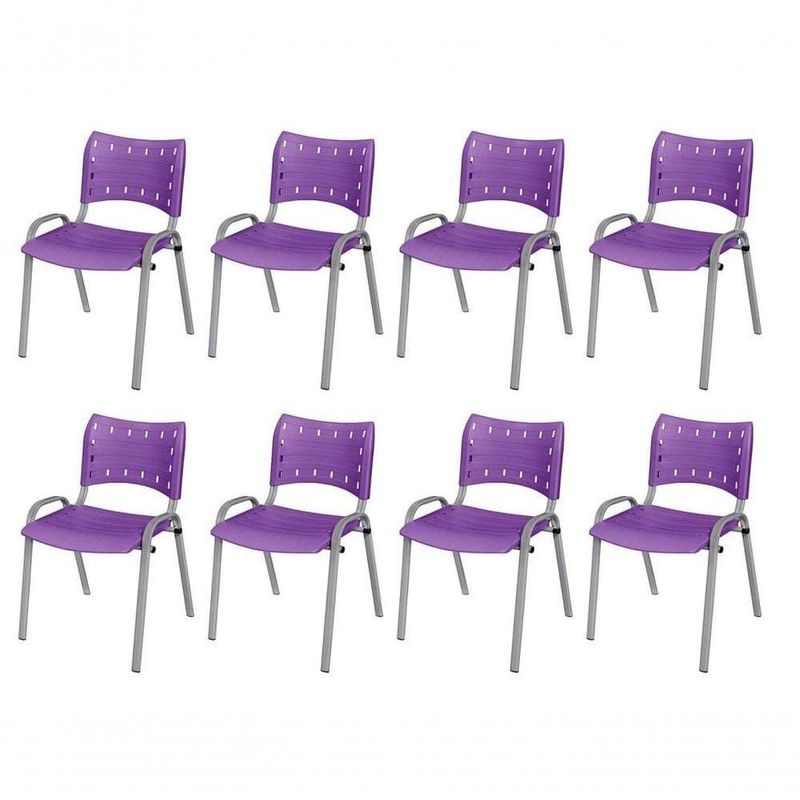 Cadeira Iso Base Cinza, Igreja, Escola, Escritório -violeta Kit 8 Peças