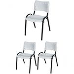 Cadeira Iso Base Preto Igreja, Escola, Escritório - Branco Kit 3 Peças
