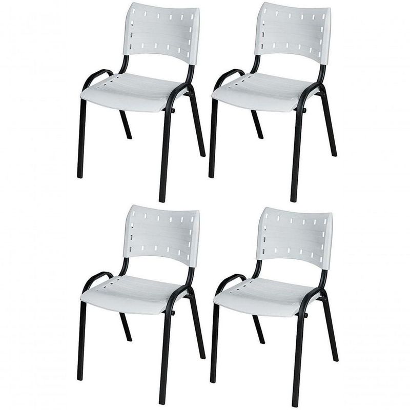Cadeira Iso Base Preto Igreja, Escola, Escritório - Branco Kit 4 Peças