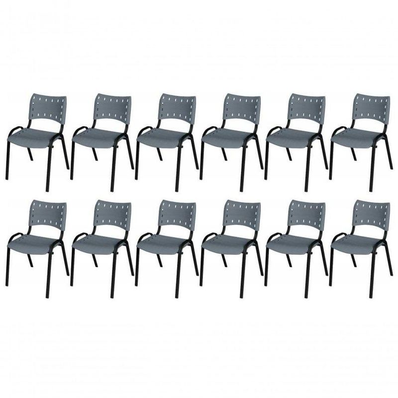 Cadeira Iso Base Preto Igreja, Escola, Escritório - Cinza Kit 12 Peças