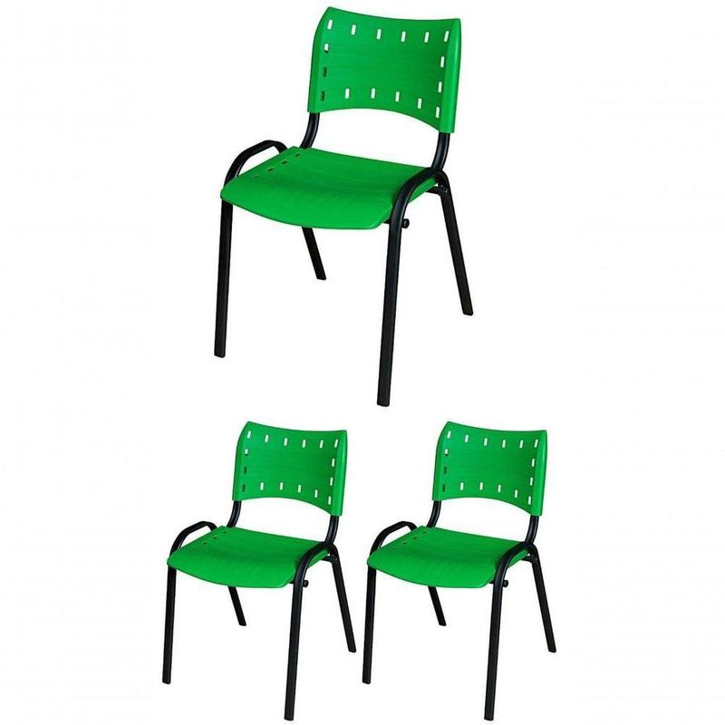Cadeira Iso Base Preto Igreja, Escola, Escritório - Verde - Kit 3 Peças
