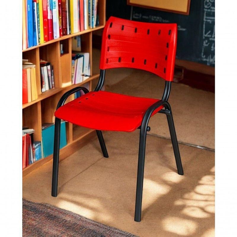 Cadeira Iso Base Preto Igreja, Escola, Escritório - Vermelho - Kit 4 Peças