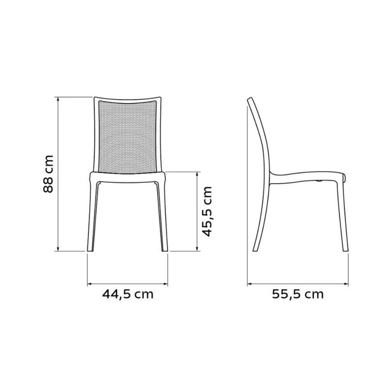 Cadeira Laura Ratan Preta TramontinaCadeira Laura Ratan Preta Tramontina é um produto diferenciado no mercado devido a sua qualidade do produto bem como seu excelente custo/benefício.Se você procura um produto bonito, resistente e de alta qualidade com um excelente custo/benefício você acabou de encontrar tudo isso na Cadeira Laura Ratan Preta Tramontina.A Cadeira Laura Ratan Preta Tramontina é fabricada em polipropileno e fibra de vidro, o que a torna uma cadeira muito resistente sem perder seu design moderno que combina em qualquer ambiente.Cadeira Laura Ratan Preta TramontinaA Cadeira Laura Ratan Preta Tramontina é excelente! Por conta de seu design que lembra traços de Ratan, a Tramontina conseguiu destacar ao seu ambiente mais personalidade e sofisticação, o que faz da Cadeira Laura Ratan Preta Tramontina um produto que combina em todos ambientes, tanto em salas de jantar, cozinhas, quiosques, padarias, bares, restaurantes, dentre todos os outros segmentos do mercado. E é claro combina perfeitamente com a sua casa.Cadeira Laura Ratan Preta Tramontina - Especificações TécnicasA Cadeira Laura Ratan Preta Tramontina é feita de polipropileno e fibra de vidro.Altura total da Cadeira 87,5 cm.Largura total da Cadeira 45,5 cm.Comprimento total da Cadeira 55 cm.Altura do chão até o assento 46 cm.Acabamento: Fosco.Suporta: Até 183 kg.Empilhável: Sim, até 8 peças.Ambiente: Interno e externo.Garantia: 12 meses para defeitos de fabricação.