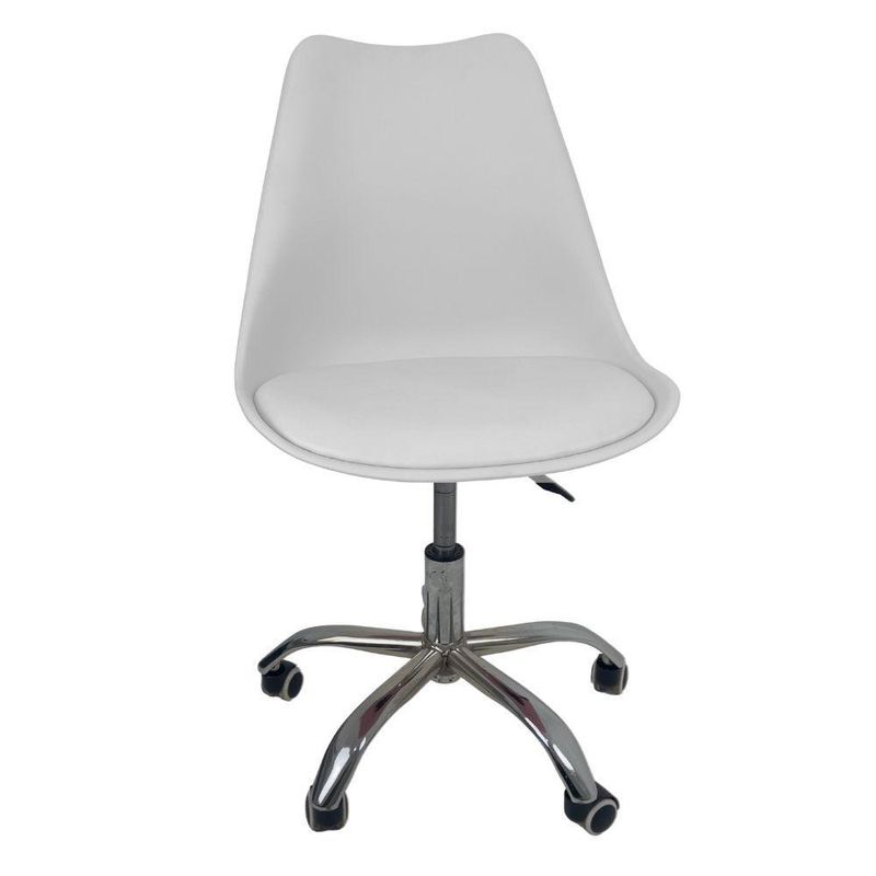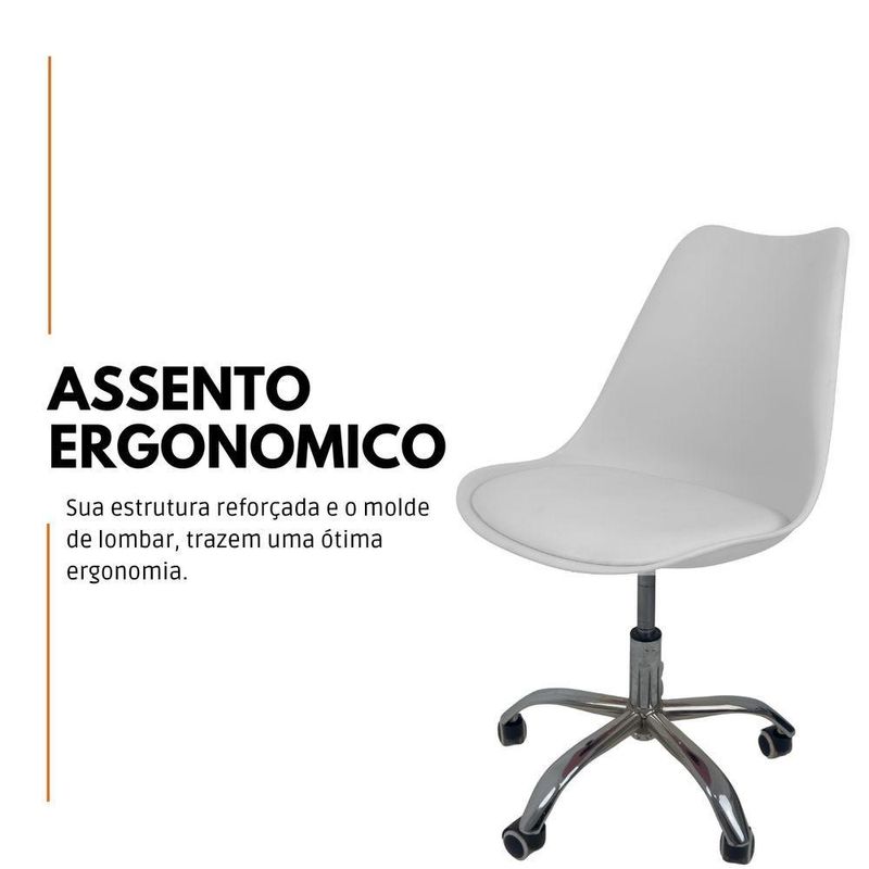 Cadeira Office Base Cromada Com Rodizio Giratória Saarinen Branco 1