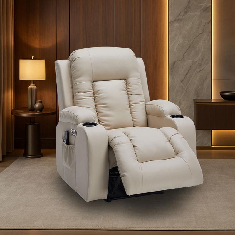 Descubra a união perfeita entre conforto, tecnologia e design com a Cadeira e Poltrona Austin. Ideal para compor salas de estar sofisticadas, ela proporciona uma experiência completa de relaxamento, aliando visual moderno e imponente a funcionalidades que transformam o descanso em um verdadeiro momento de bem-estar.A estrutura da poltrona é construída em madeira de alta resistência, garantindo durabilidade e segurança no uso diário. O revestimento em PU premium acrescenta elegância, toque macio, fácil limpeza e excelente resistência ao desgaste. Para maior praticidade, a cadeira do papai conta com dois porta-copos embutidos nos braços e um revisteiro lateral funcional, além de base fixa que assegura estabilidade e evita movimentos indesejados.Com sistema de reclinação elétrica de até 160°, a poltrona reclinável Austin permite encontrar a posição perfeita para ler, assistir ou descansar. O assento retrátil garante apoio total ao corpo, ampliando a sensação de conforto. Ao lado do botão de reclinação, estão integradas entradas USB e USB-C, ideais para carregar dispositivos enquanto você relaxa, sem precisar se deslocar.O grande diferencial desta cadeira do papai está nas funções de massagem e aquecimento. Por meio de um controle multifuncional bivolt, a poltrona ativa 8 pontos de massagem estrategicamente distribuídos para aliviar tensões em costas e lombar. O sistema de aquecimento no encosto adiciona um toque extra de aconchego, especialmente nos dias frios.A Cadeira e Poltrona do Papai Austin é a escolha perfeita para quem busca conforto, praticidade e tecnologia em um só produto. Mais do que uma simples cadeira do papai, ela é um convite ao relaxamento com estilo, tornando-se o seu novo lugar favorito dentro de casa. Dimensões do Produto: