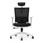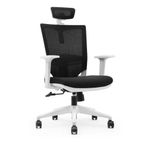 - Apoio de cabeça ajustável com estrutura em polipropileno branca revestido em tela mesh;