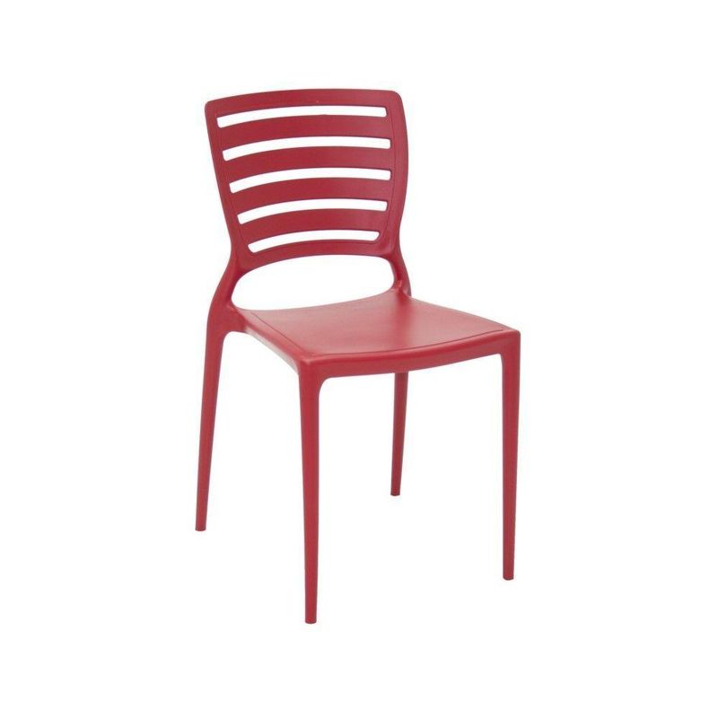 Cadeira Sofia Vermelha Tramontina Encosto Vazado Horizontal Cadeira Sofia Vermelha Tramontina foi feita para você. Robusta e moderna são as palavras que definem a Cadeira Sofia Vermelha Tramontina. É um produto diferenciado no mercado devido a sua qualidade do produto bem como seu excelente custo/benefício. Se você procura um produto bonito, resistente e de alta qualidade com um excelente custo/benefício você acabou de encontrar tudo isso na Cadeira Sofia Vermelha Tramontina. A Cadeira Sofia Vermelha Tramontina é fabricada em polipropileno e fibra de vidro, o que a torna uma cadeira muito resistente sem perder seu design moderno que combina em qualquer ambiente.Cadeira Sofia vermelha Tramontina é boa?