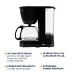 O reservatório da Cafeteira Britânia é de 1,2L e permite preparar grandes quantidades de café sem a necessidade de reabastecer constantemente. A jarra de vidro é elegante e o design moderno da cafeteira adicionam um toque especial à sua cozinha.