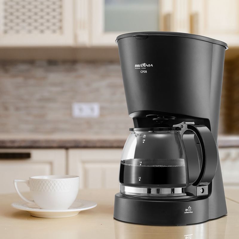 Já ouviu dizer que os melhores momentos são compartilhados? É verdade, a Cafeteira Britânia CP28tem capacidade para até 28 cafezinhos de uma vez só! O filtro é permanente e removível, dispensando o uso de filtro de papel e facilitando a limpeza; Contém placa de aquecimento que conserva a temperatura do café sem alterar o sabor; O reservatório de água com graduação indica o nível de água do reservatório; Possui sistema corta-pingo que permite a retirada da jarra enquanto o café está sendo preparado; Cafezinhos em todos os momentos, quentinhos e do jeito que você gosta. A Cafeteira Britânia CP28 vai fazer seu dia mais feliz!