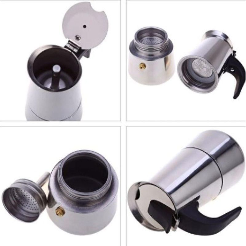 CAFETEIRA ITALIANA DE INOX PARA 6 XÍCARAS – PRATICIDADE E SABOR NO SEU DIA A DIADesfrute do verdadeiro sabor do café com a tradicional Cafeteira Italiana de Inox, ideal para quem valoriza aroma, intensidade e praticidade no preparo. Com capacidade para até 6 xícaras, ela é perfeita para o uso diário ou para servir suas visitas com elegância.Características do Produto:Material: Aço inoxidável de alta qualidade, resistente e durávelCapacidade: Prepara até 6 xícaras de café espresso por vezDesign: Clássico e elegante com acabamento polidoCabo: Ergonômico, resistente ao calor, para manuseio seguroVálvula de segurança: Proporciona um preparo confiável e tranquiloCompatibilidade: Pode ser usada em fogões a gás, elétricos e vitrocerâmicos (não é compatível com indução)Fácil de usar e limpar: Basta adicionar água, café moído e levar ao fogo!Como Funciona:Encha a base com água até a válvula de segurançaColoque o café moído no filtro metálico (sem compactar)Rosqueie bem a parte superiorLeve ao fogo baixo e aguarde até o café subir – pronto em poucos minutos!Dimensões Aproximadas:Altura: 17,5 cmDiâmetro da base: 9 cmPeso: 420gIdeal para:Uso doméstico ou em pequenos escritóriosItem incluso:1 Cafeteira italiana para 6 xícaras