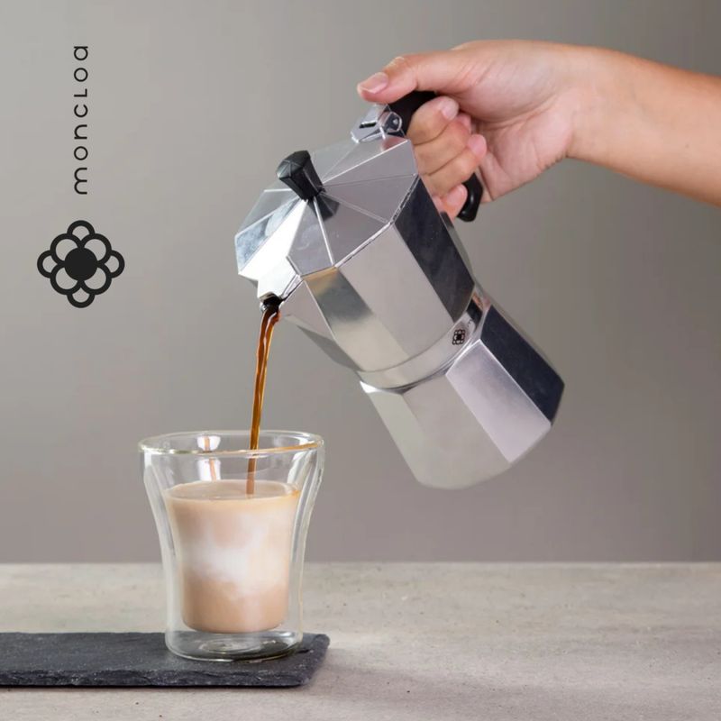 A Classic Moka Moncloa é fabricada em aço-inox e polipropileno, materiais que fazem sua cafeteira durar por mais tempo.