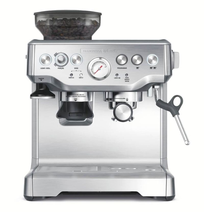 Há quem diga que o dia só começa depois de um bom café, e com a Cafeteira Tramontina Express Pro em Aço Inox com Moedor 2 L 127 V da linha de Eletroportáteis Tramontina by Breville, esse momento ganha um novo patamar. Com ela, você vive uma experiência completa: desde a escolha dos grãos até a extração perfeita do espresso. Com funil de 250 g para grãos, rende até 25 doses de café fresco e conta com moedor embutido com 18 níveis de moagem, do mais grosso ao mais fino, garantindo precisão e controle total no preparo. Além disso, a cafeteira oferece compartimento de moagem sem o uso das mãos, tanque removível de 2 L com abastecimento superior e bandeja coletora com separador de resíduos úmidos e secos. O painel permite ajustar o volume para 1 ou 2 xícaras, controlar a temperatura da extração e ainda oferece função de água quente instantânea. Com a bandeja de aquecimento para até 6 xícaras, seu café estará sempre na temperatura ideal. Um verdadeiro convite para transformar o seu ritual em um momento ainda mais prazeroso.